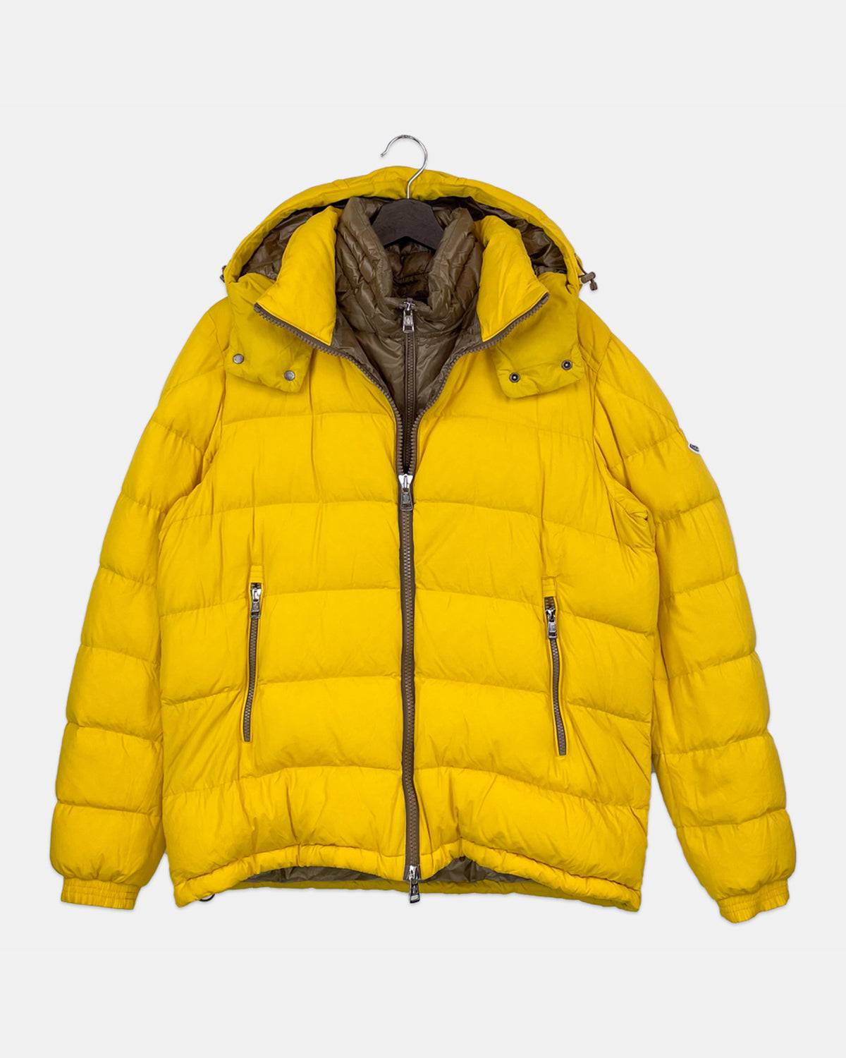 - Gul dunjacka med dragkedja och luva. Passar perfekt för en kall vinter.