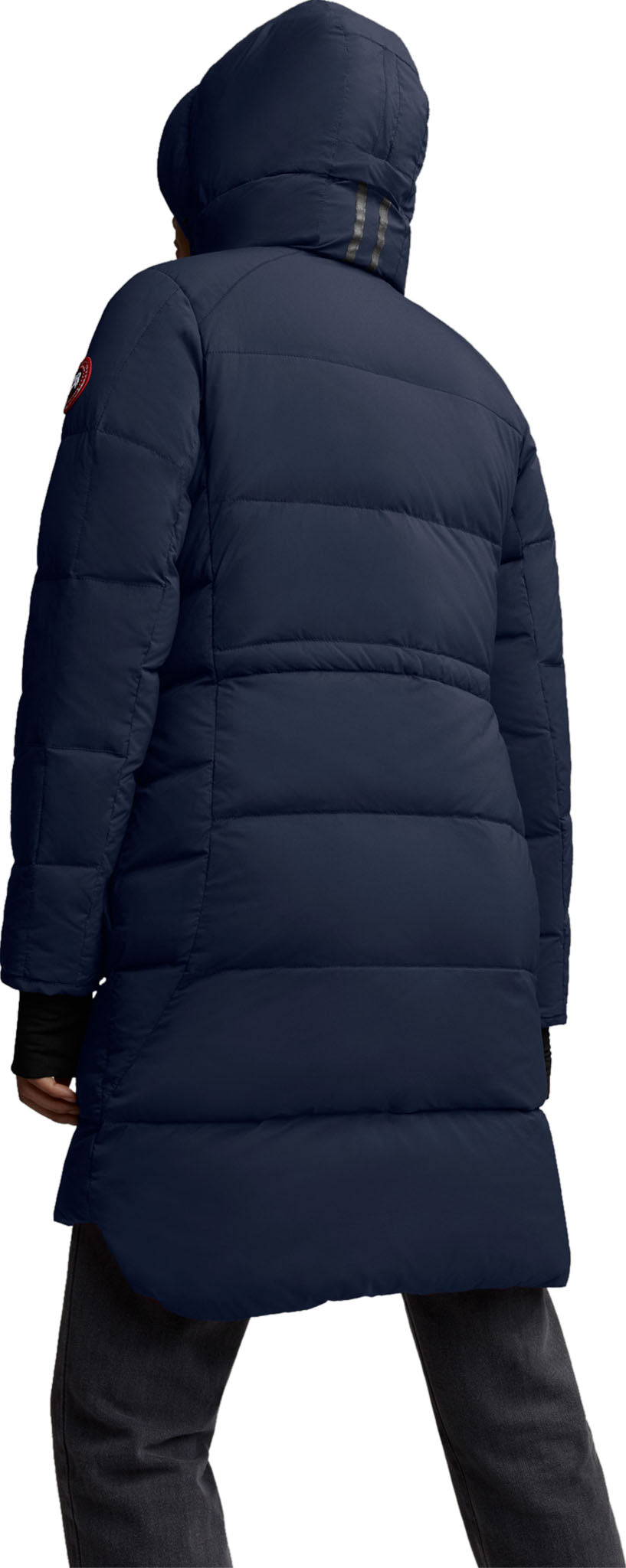 • 2-way adjustable down-filled hood adds warmth and element protection. Signature double-stripe reflective details at back for added visibility in low light