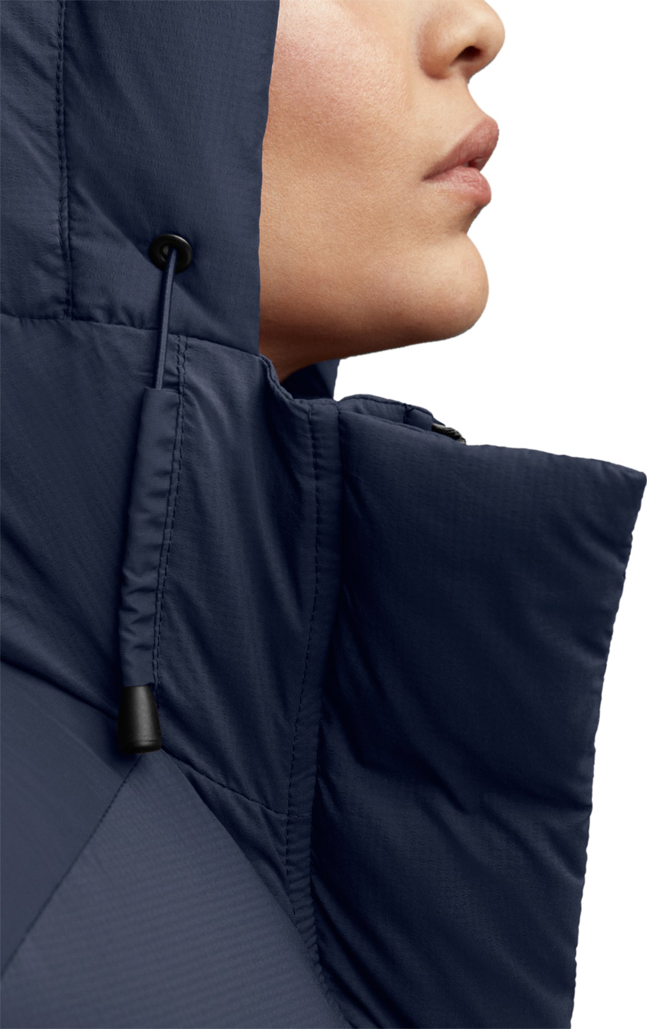 • Rabat en duvet avec boutons-pression dissimulés par-dessus la fermeture éclair à double sens afin de protéger des éléments. Fermeture éclair s’ouvrant à partir du bas pour plus de liberté de mouvement ou une ventilation accrue
