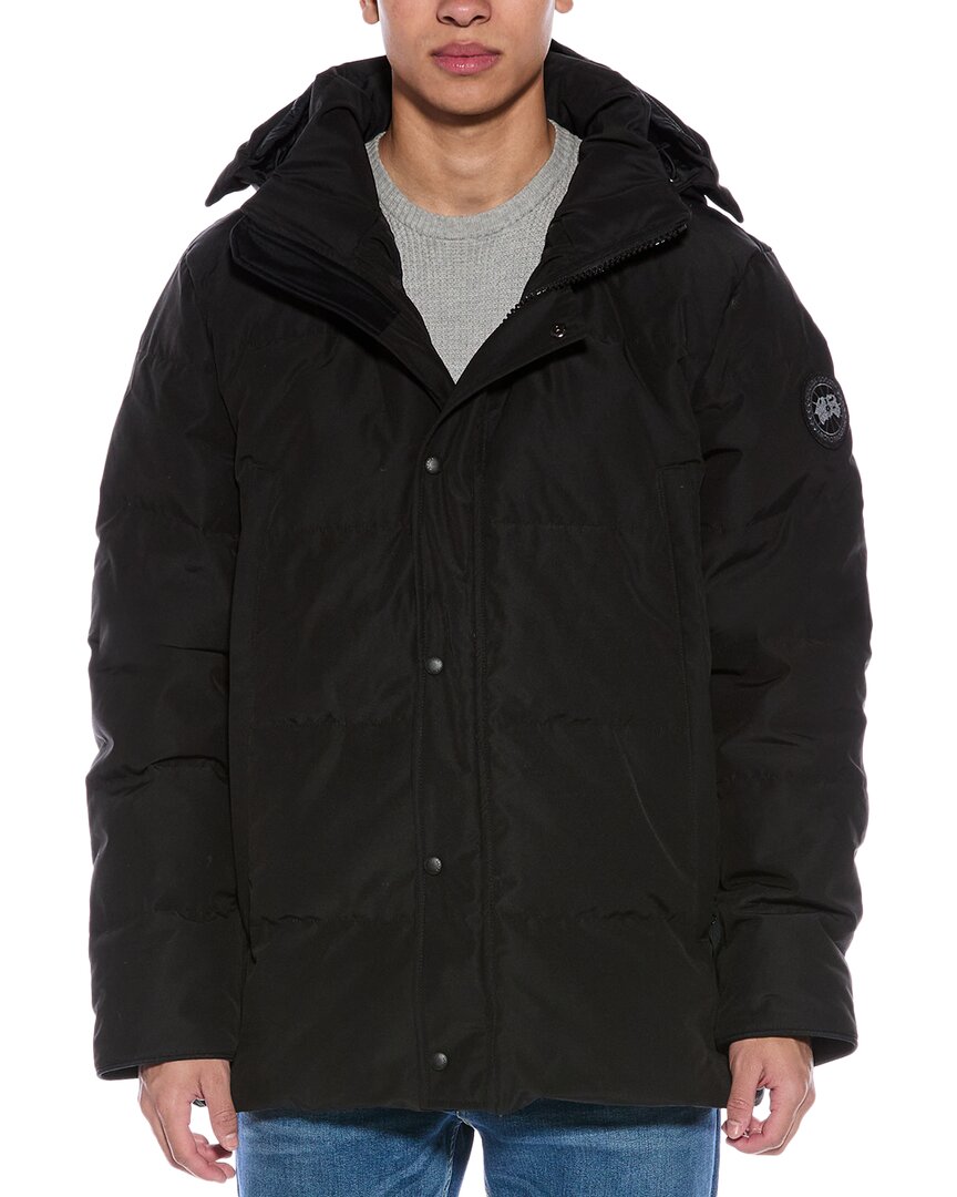 Introducing the Canada Goose Wyndham Parka in black, a functional and stylish outerwear option for the modern adventurer. This quilted parka features a removable hood, two front zippered pockets, a patch logo at the sleeve, and ribbed inner cuffs for added warmth. Measuring approximately 30 inches from shoulder to hem, this parka is designed to provide both style and practicality. The model is 6'3 and is wearing a size large, but please note that measurements may vary slightly by size.Crafted with a durable shell of 84% polyester and 16% cotton, a lining of 100% polyamide, and fill of 80% duck down and 20% feather, this parka is heavyweight and built to withstand the elements. With zipper and snap closures, this parka is easy to put on and take off, making it the ideal choice for cold weather. It is recommended to dry clean only to maintain its quality.Proudly made in Canada, this Canada Goose Wyndham Parka is 100% genuine. While some merchandise may be purchased from trusted independent suppliers, we stand by the authenticity of every product sold on our site. Choose Canada Goose for function-first apparel with a nod to adventure.
