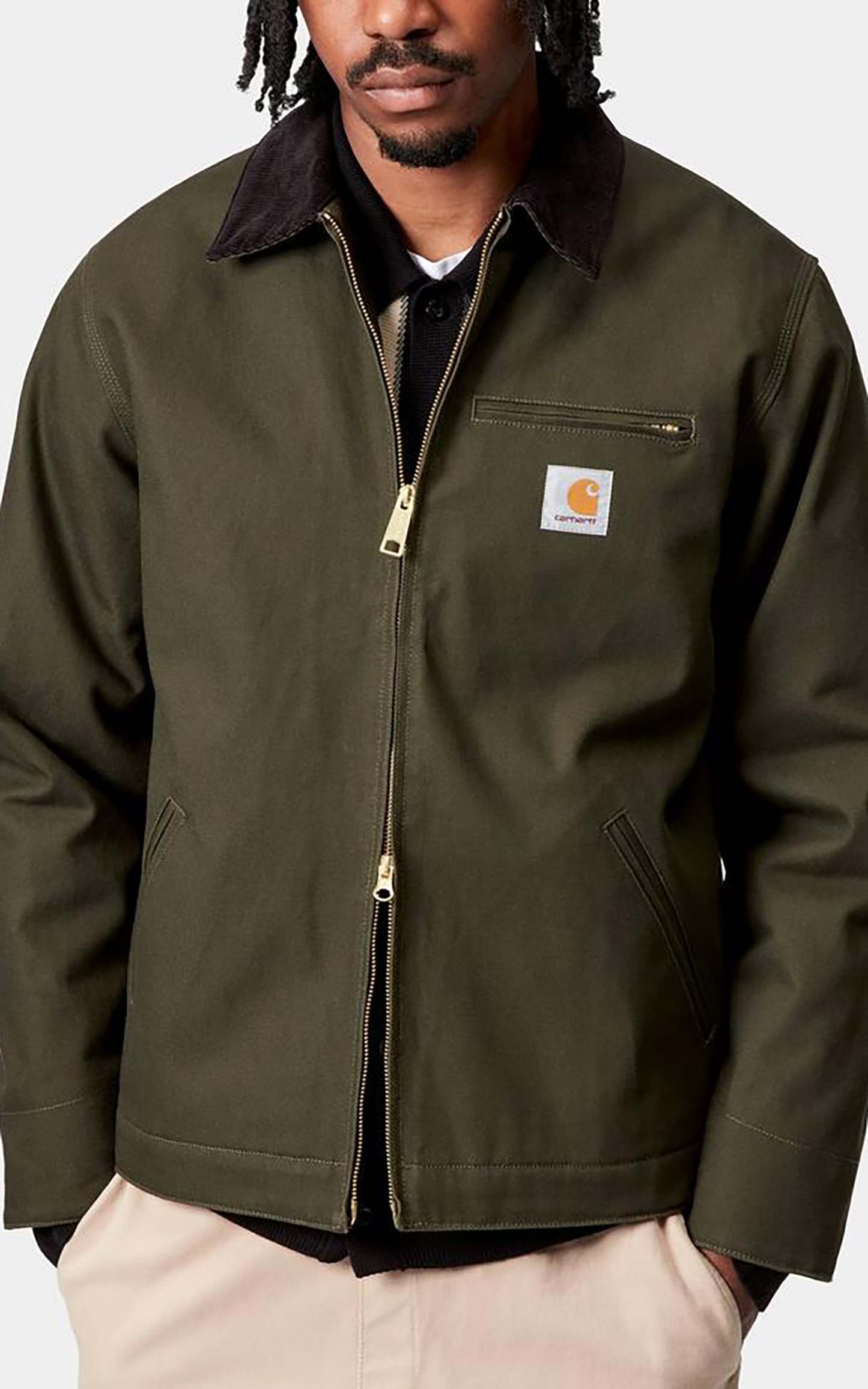 A Carhartt WIP classic, the Detroit Jacket is constructed in Carhartt WIP´s hardwearing 12 oz Dearborn Canvas and features a blanket lining for warmth. A corduroy collar, as well as a gold-tone zip closure at the front and on the chest pocket complete the design.