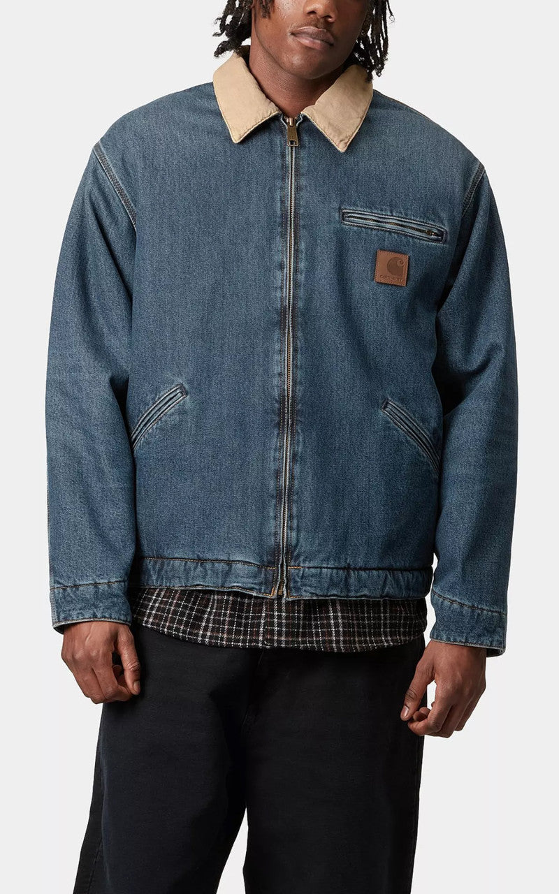 The OG Detroit Jacket is made in Carhartt WIP´s original loose fit from heavyweight cotton denim. It also has a diamond-quilted lining in the body and sleeves for warmth. A contrasting corduroy collar, two-way front zip and zipped chest pocket offer tactile detailing. An artificial leather Square Label completes the design.