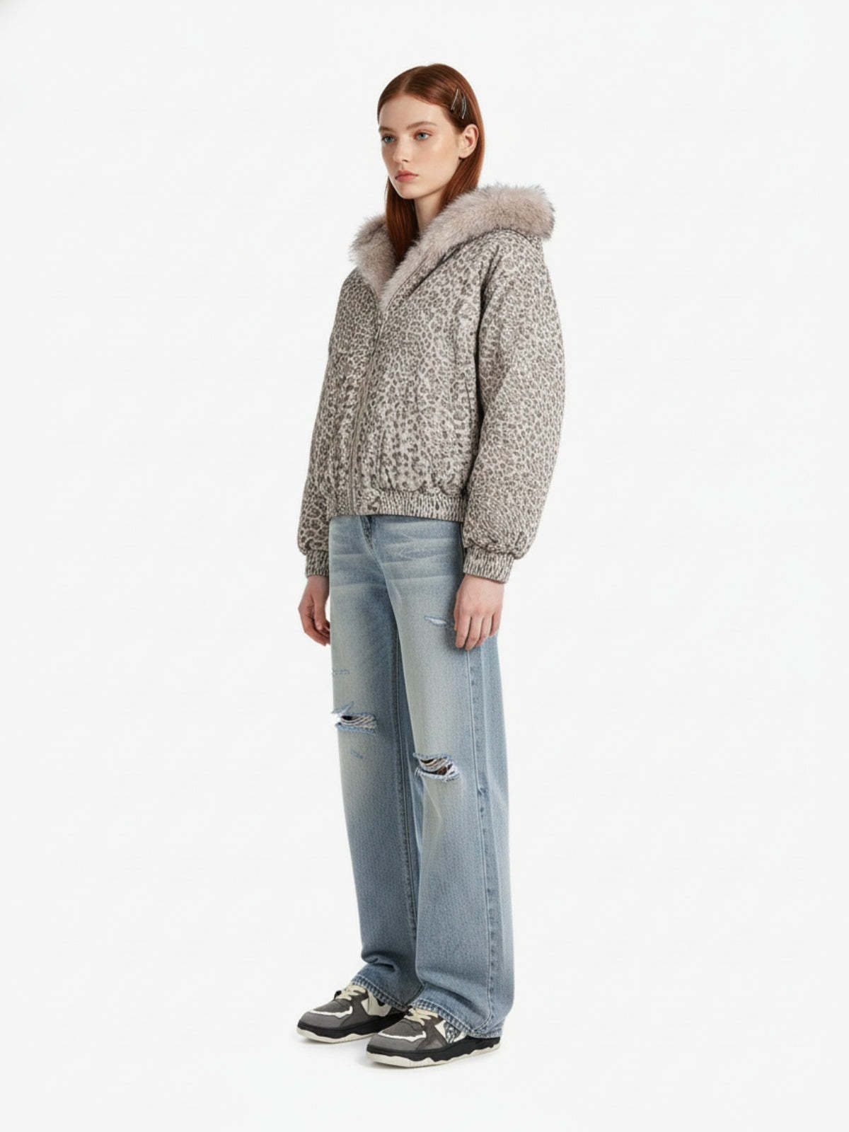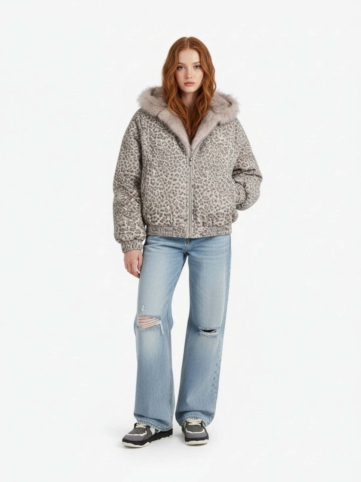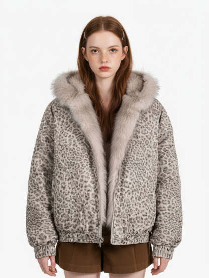 Cotton Cheetah Print Mink Fur Hooded Jacket - 2270