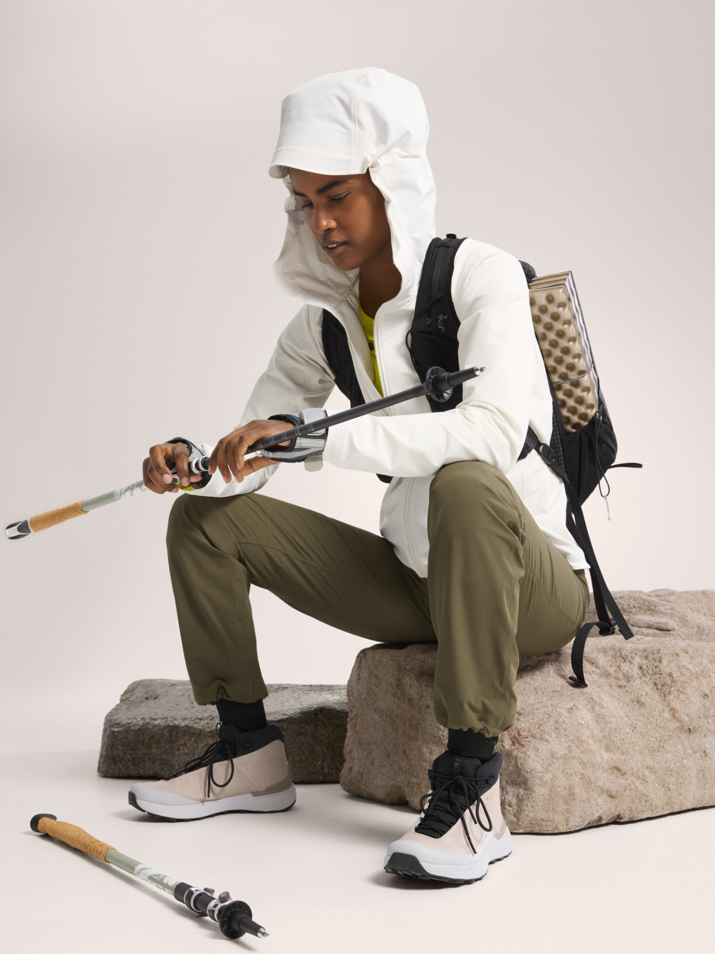 Versatility is freedom. Inspired by British Columbia's range of terrain, environments, and conditions, the Gamma Hoody is an essential softshell for anyone seeking new places and experiences. Wind resistant and water repellent, the lightweight softshell fabric stretches, breathes, and has a brushed backer for light warmth. The trim fit allows room for light layers and is patterned for freedom of movement. A helmet compatible StormHood™ delivers full coverage without impacting peripheral vision.