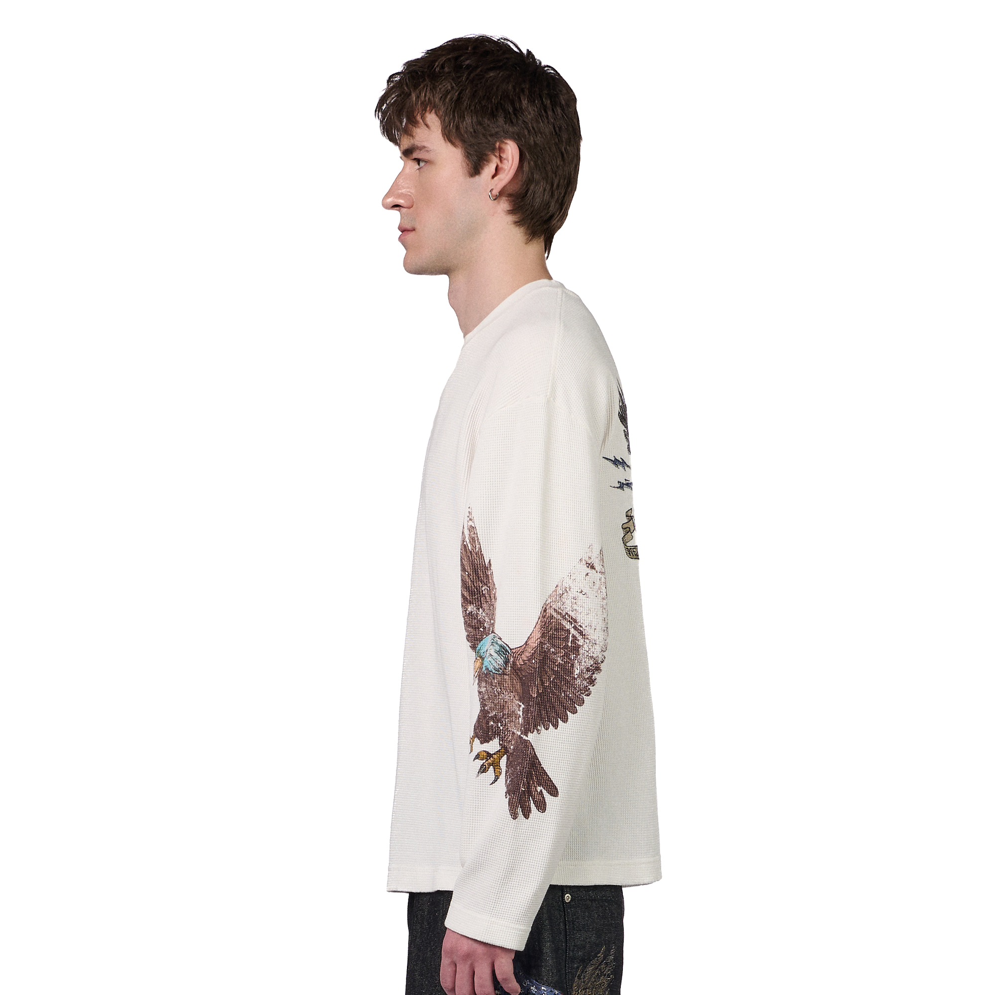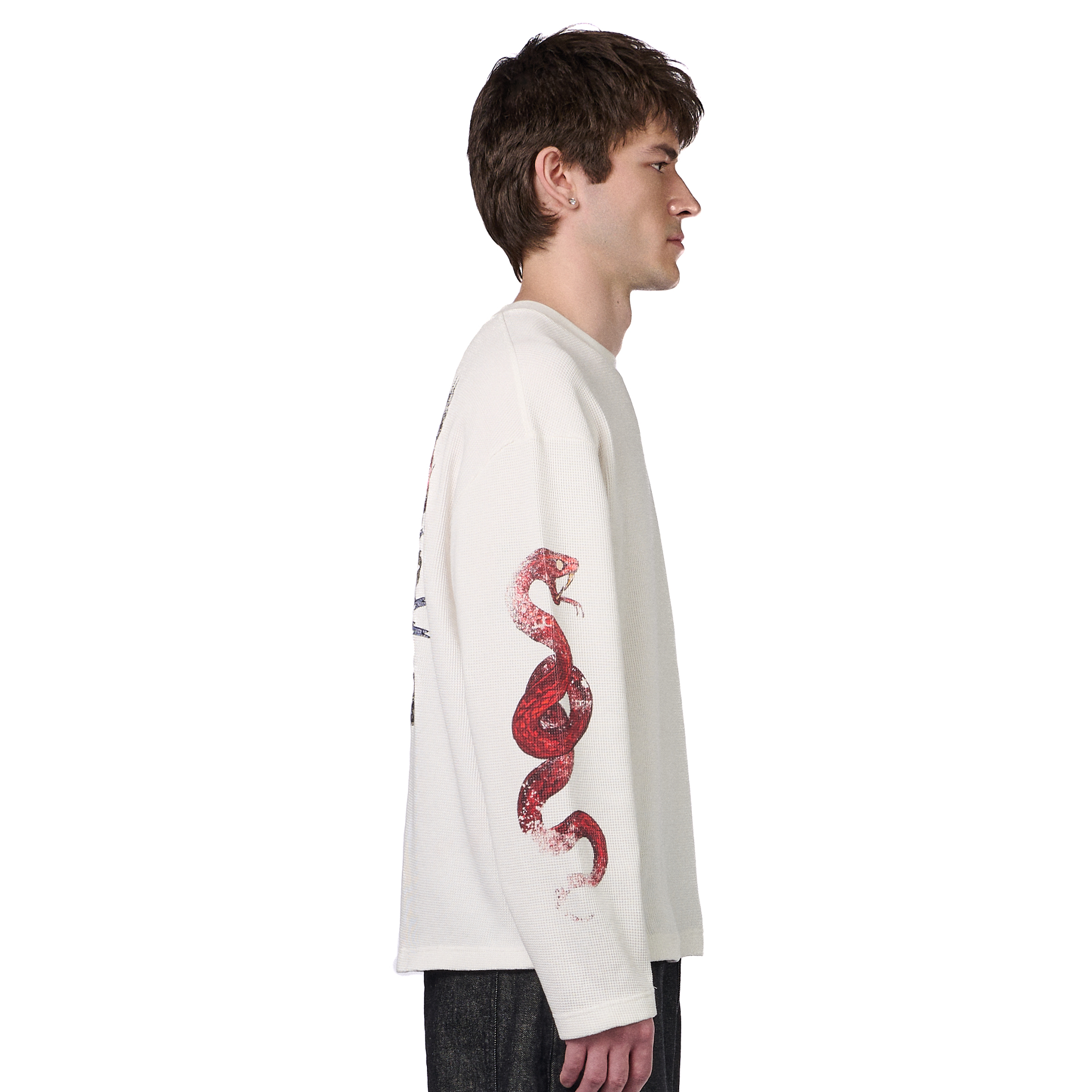 255gsm preshrunk waffle fabric / 100% cotton / printed sleeves / embroidery on back / fits true to size