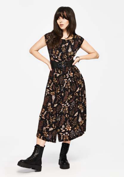- Black and Brown Midi Dress