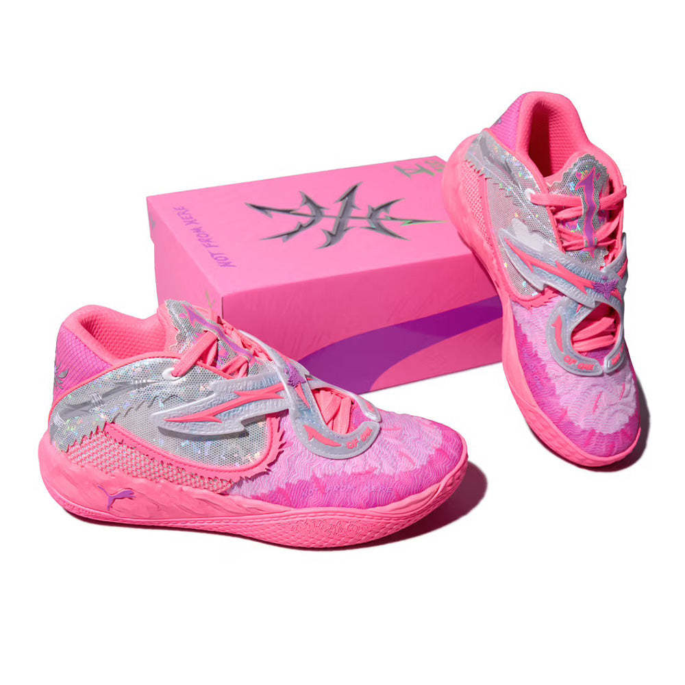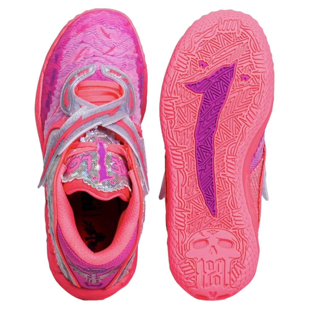 LaMelo Ball’s 5th signature shoe is set to become the new “rockstar” in the basketball world. The new molded forefoot strap lockdown system helps to highlight unique material executions and LaMelo storytelling elements that elevate The MB.05. The first drop of MB.05 marks the kickoff to Melo’s “World Tour”. The sunstruck pink color is complimented by iridescent prints and sparkling details throughout the silhouette to open the tour with a bang! Grab these to become the star of the show.