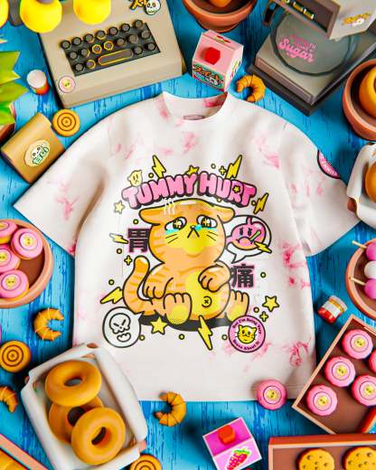 - Digital print on cotton tie dyed tee