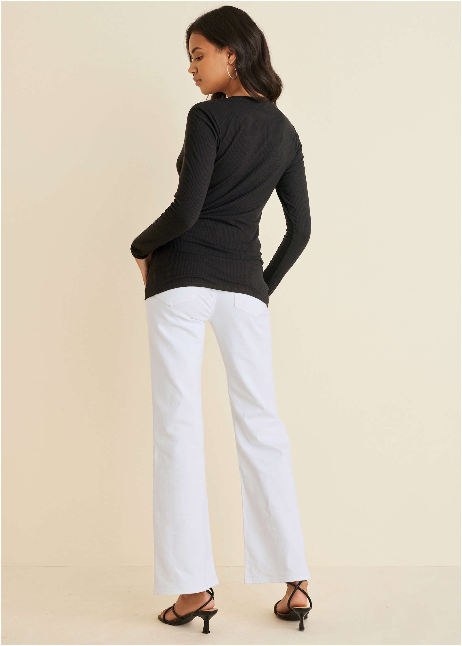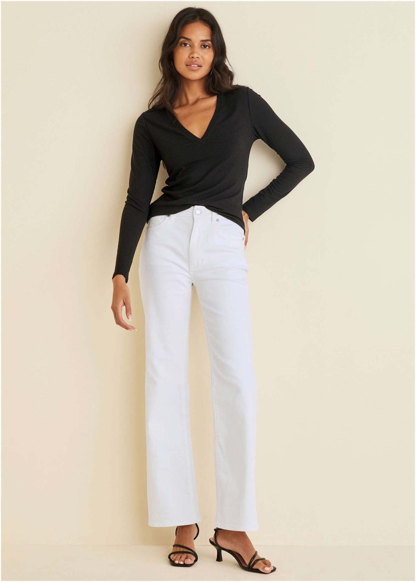 Your quest for the perfect long-sleeve top stops here. This winner is done in fine ribbed fabric with plenty of stretch. Translation: it's super comfy and hugs in all the right places. Tuck this wardrobe essential into jeans, skirts, trousers—you name it. It's casual yet elevated and always looks like a 10/10.* Sizes: S (4-6), M (8-10), L (12-14), XL (16)* Plus sizes: 1X (18-20), 2X (22-24), 3X (26-28)* 25.5" from shoulder* Deep V-neck* Long sleeves* Polyester/viscose/elastane. Imported
