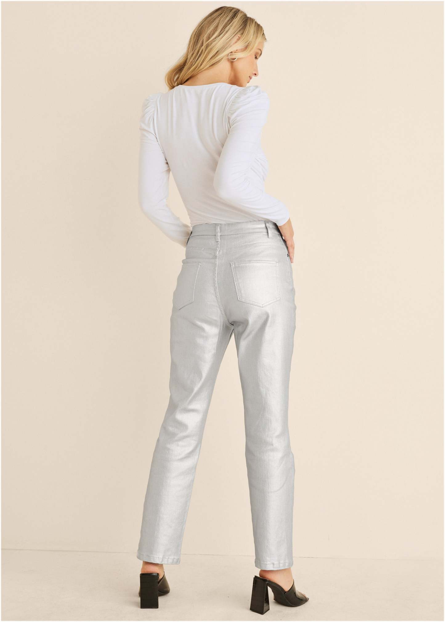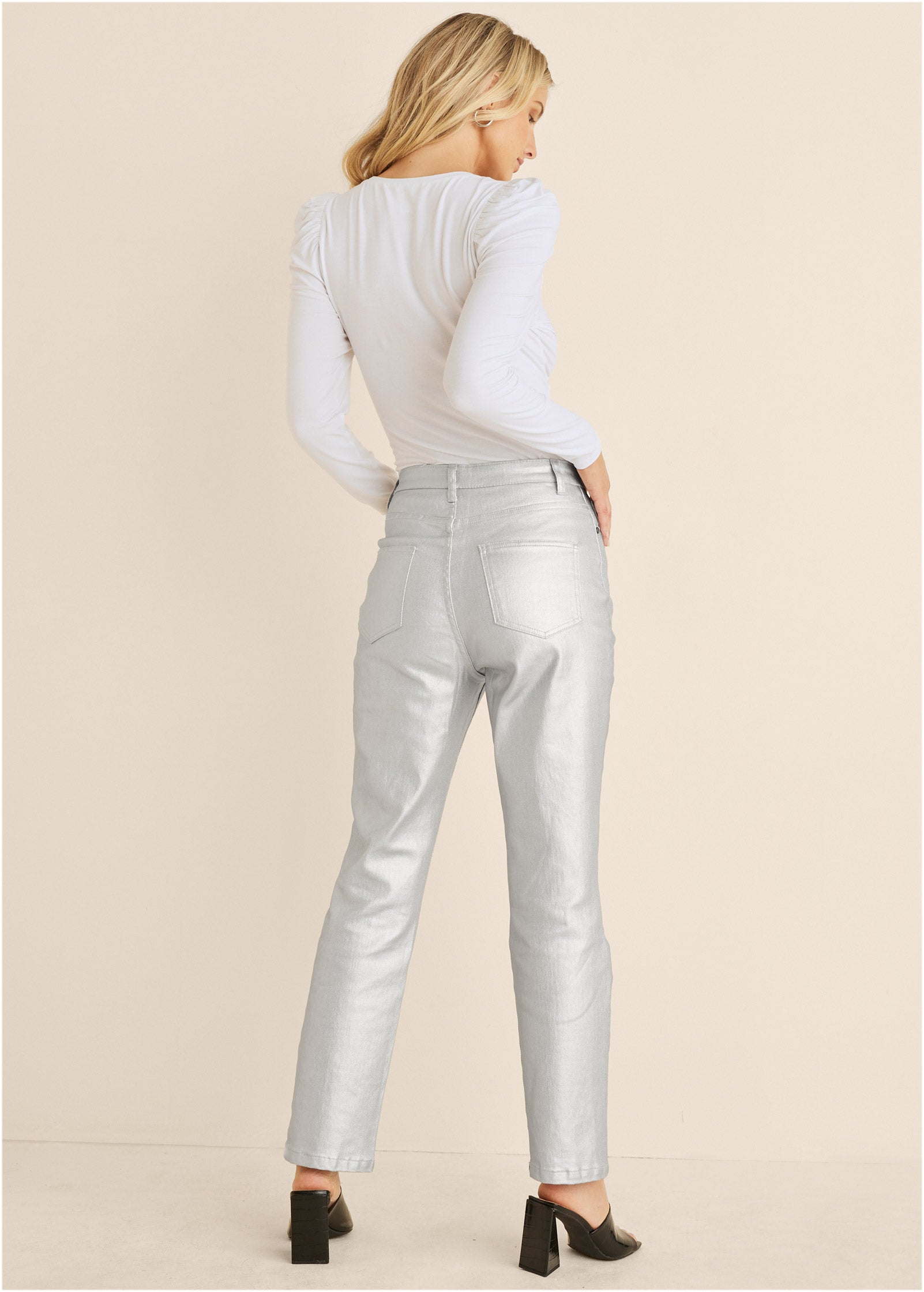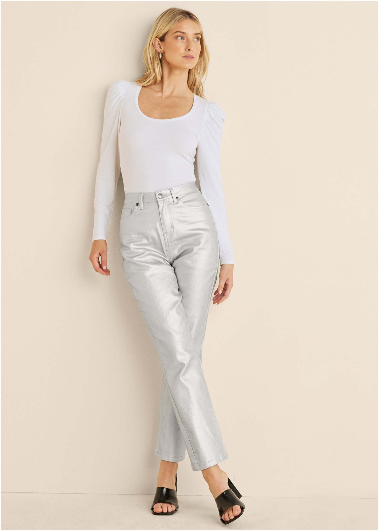Puff Shoulder Long Sleeve Top - White