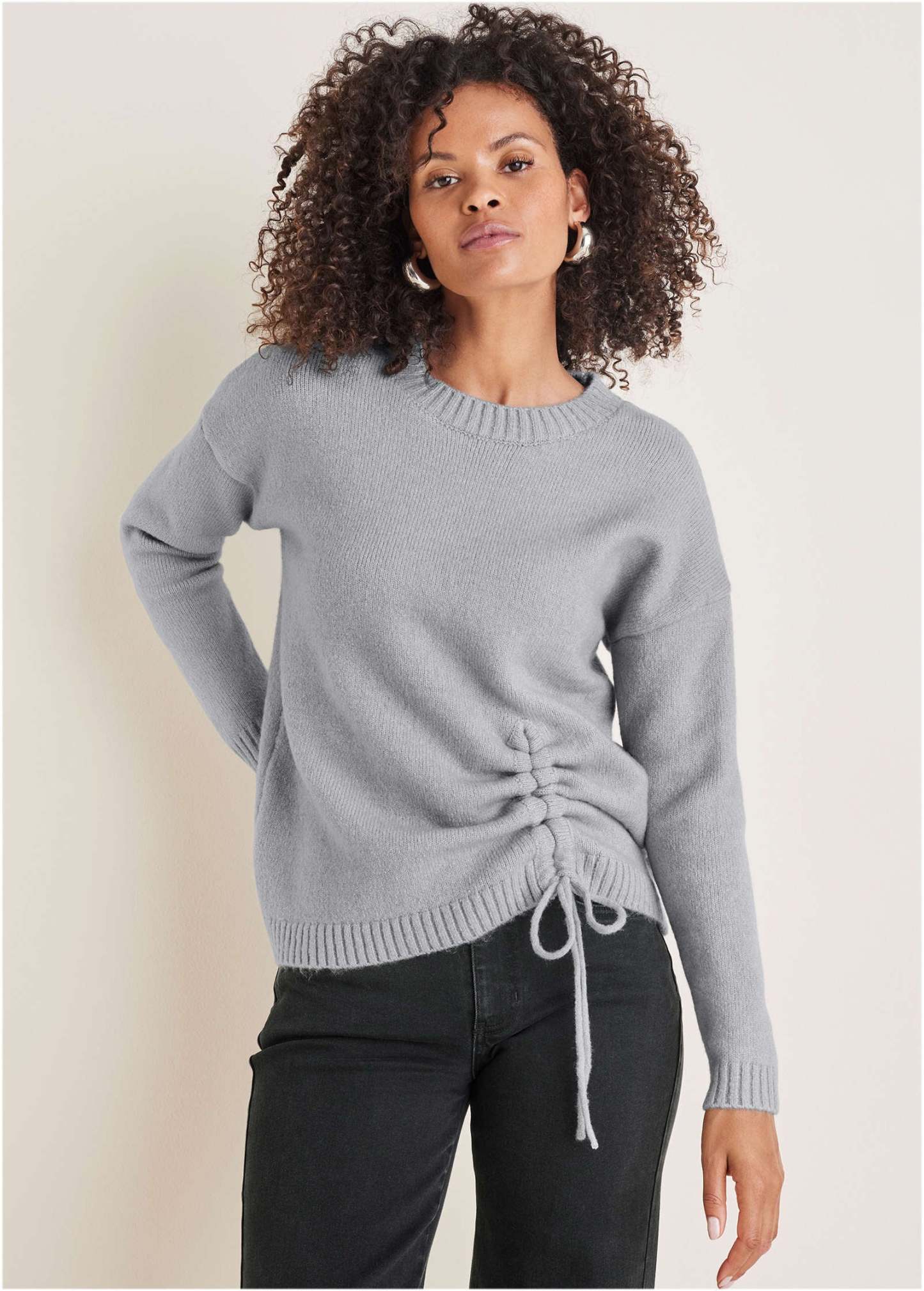 Ruched Sweater - Light Heather Grey
