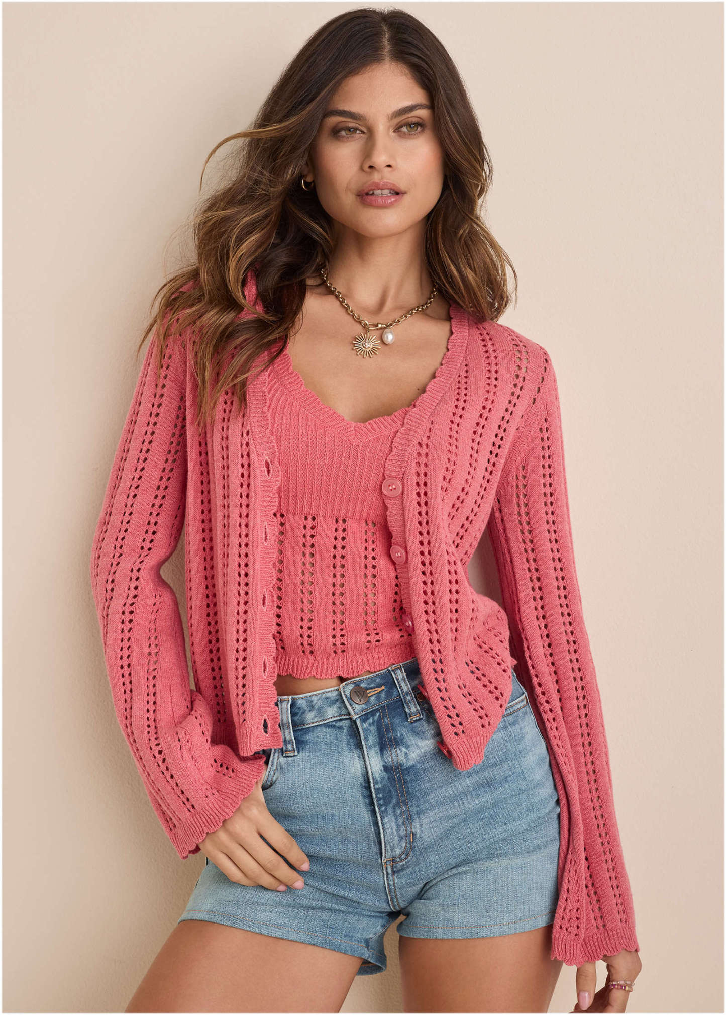 A must-have layer for the warmer months, the Pointelle Bell Cardigan features a button closure and long bell sleeves for a dramatic, flowy silhouette. Made from soft, breathable pointelle fabric, this cardigan pairs perfectly with the Pointelle Tank for an effortlessly chic spring or summer set.* Sizes: XS (2), S (4-6), M (8-10), L (12-14), XL (16)* Button closure: Easy to wear and secure.* Long bell sleeves: Dramatic, flowy sleeves for a stylish look.* Pointelle fabric: Lightweight and breathable, perfect for warm weather.* Pair with the Pointelle Tank: Create the ultimate spring or summer set.* Cotton. Imported