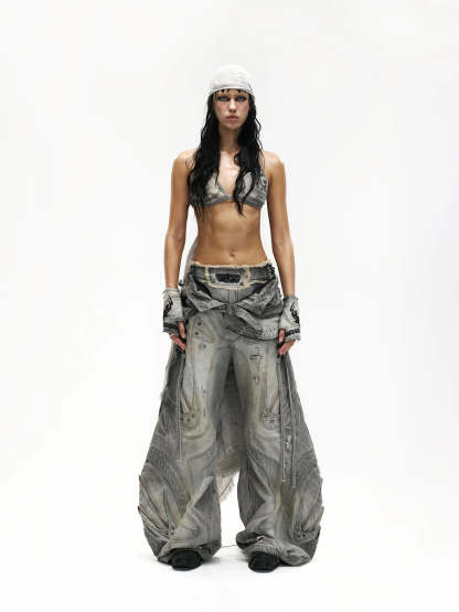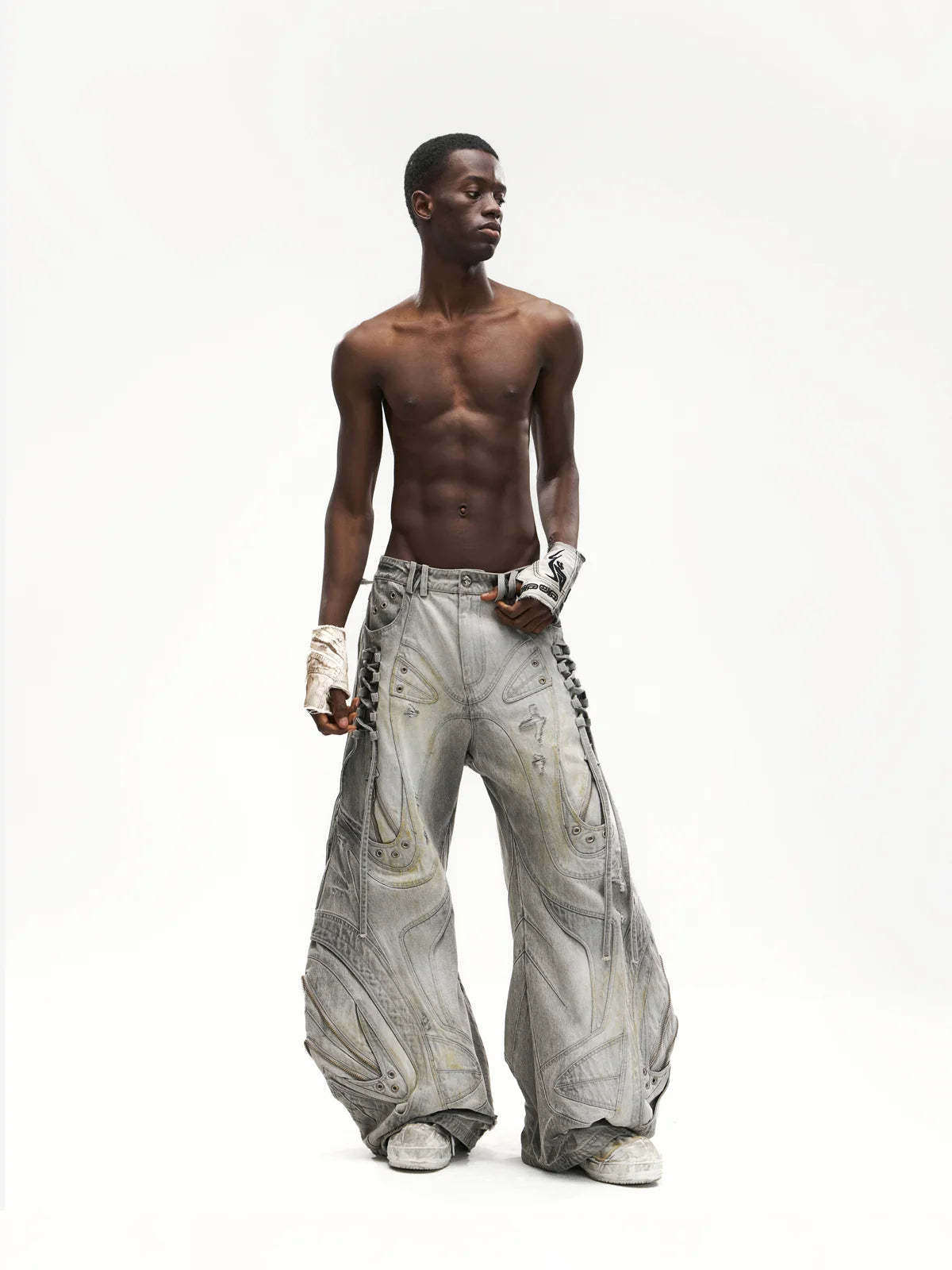 Deconstructed Exaggerated Flared Patchwork Jeans