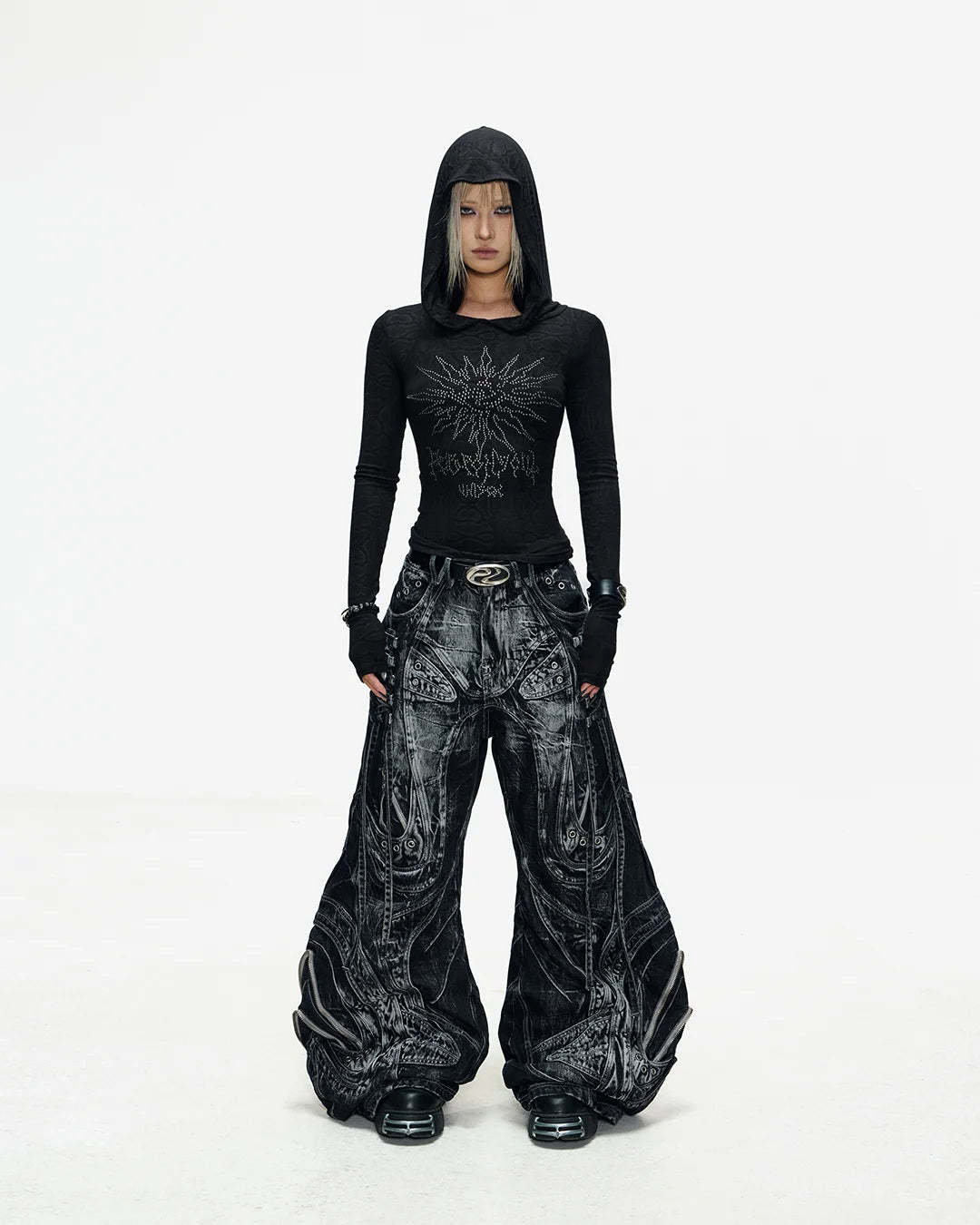 Deconstructed Exaggerated Flared Patchwork Jeans In Black