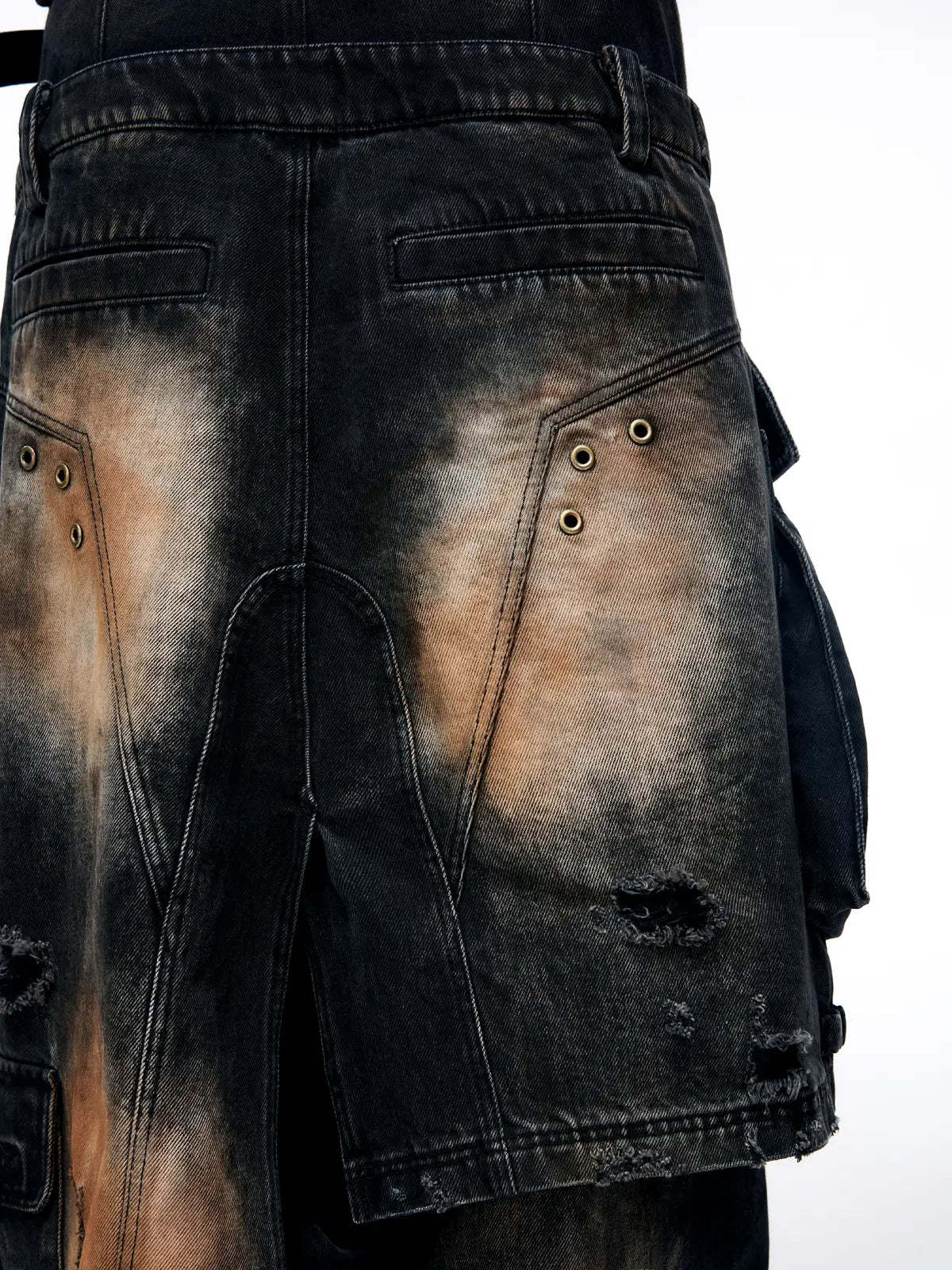 Personsoul Armor Faux Skirt Mud Dye Cargo Pants(limited)