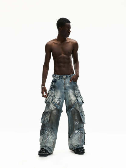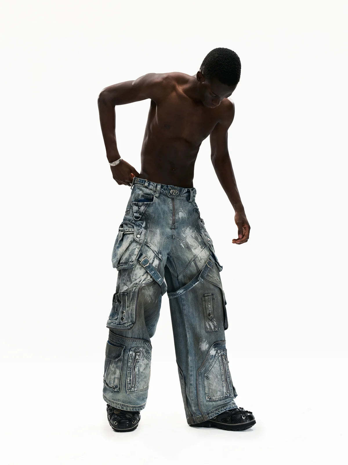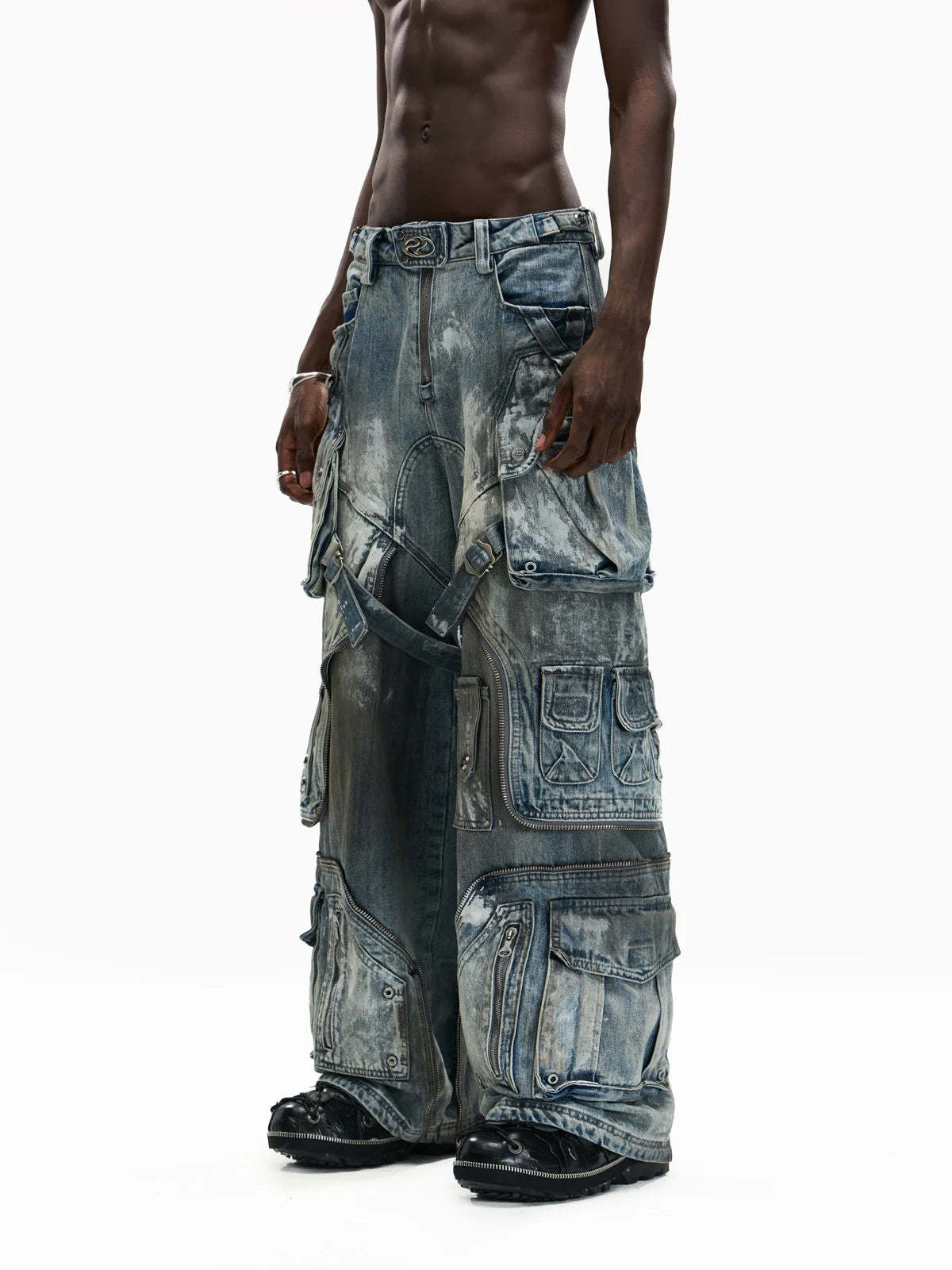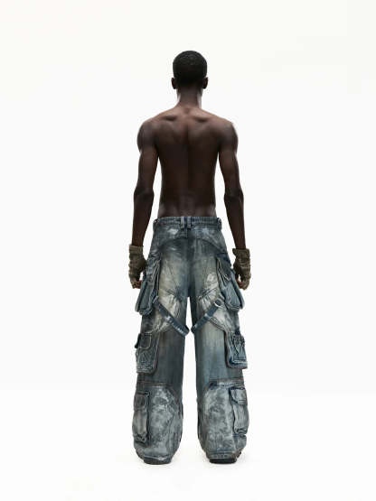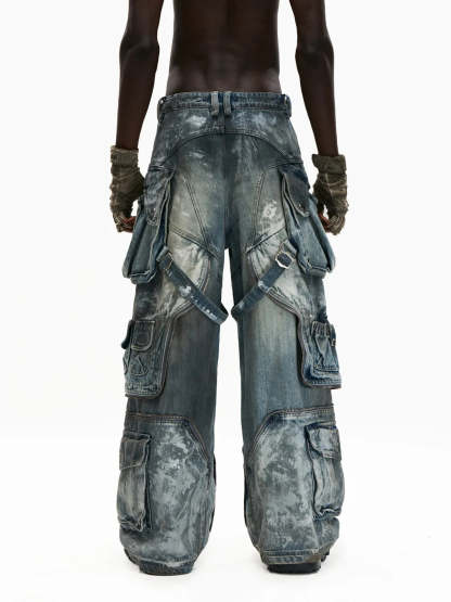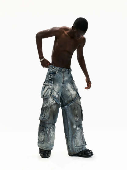 Personsoul White Stain Graffiti Cargo Pants